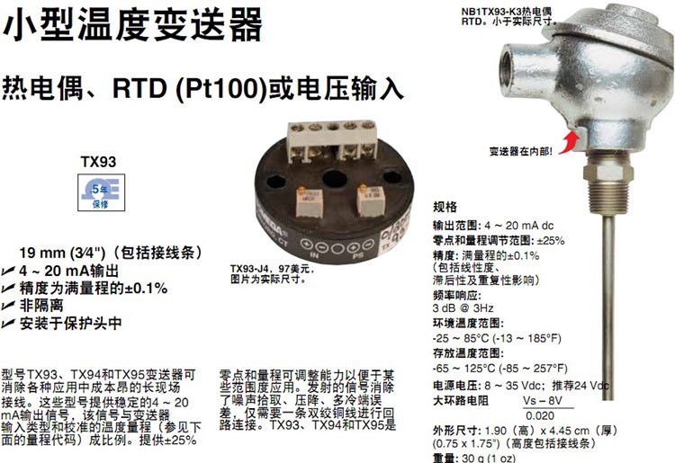 温度变送器TX93-J2,TX93-K2,TX93-J4,TX93-K4,TX94-1,TX95-V1-V2