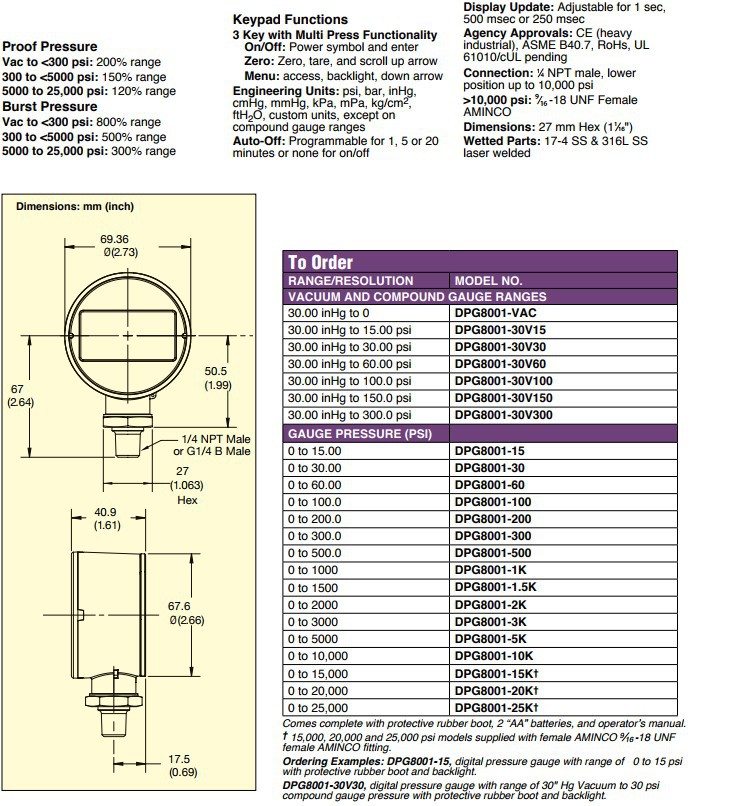 美国奥米佳数字压力表DPG8001-300,DPG8001-500,DPG8001-2K