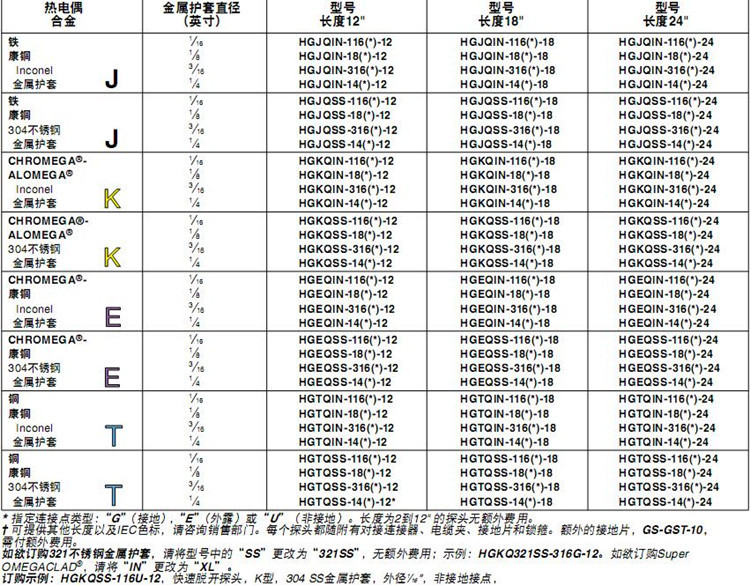 美国奥米佳热电偶HGKQIN-14U-24,HGKQIN-116G-12,HGKQIN-18E-18