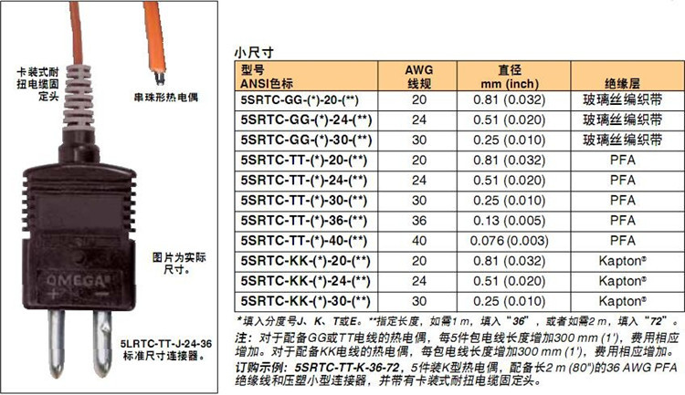 美国奥米佳热电偶K型5件装5SRTC-TT-K-36-36,5SRTC-TT-K-36-72