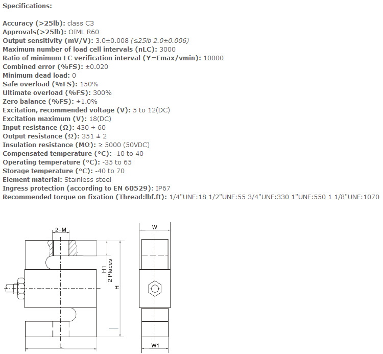 美国奥米佳称重传感器LC103B-500,LC103B-1K,LC103B-2K,LC103B-5K
