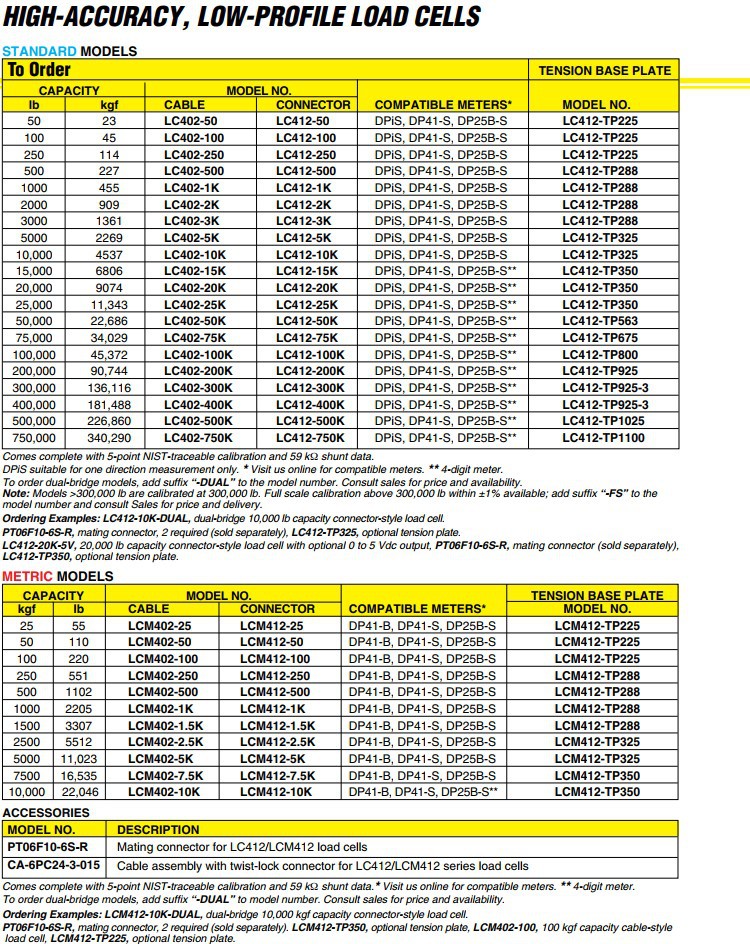 美国奥米佳称重传感器LC402-50,LC402-100,LC402-250,LC402-500