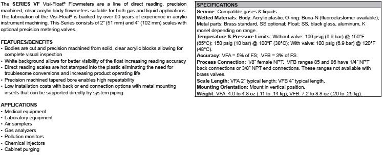 美国Dwyer德威尔浮子流量计VFA-3-SSV,VFA-3-BV,VFA-3-EC-SS-APF