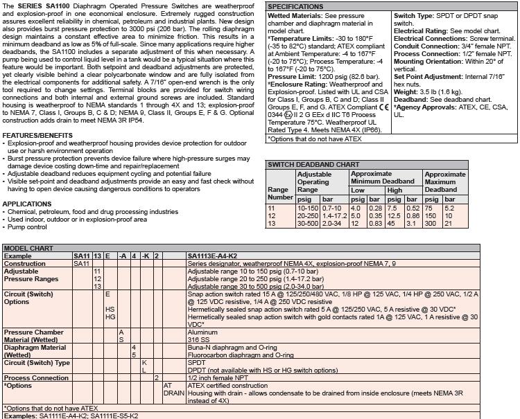 Dwyer德威尔压力开关SA1111E-S5-K1,SA1112E-S5-K1,SA1113E-S5-K1