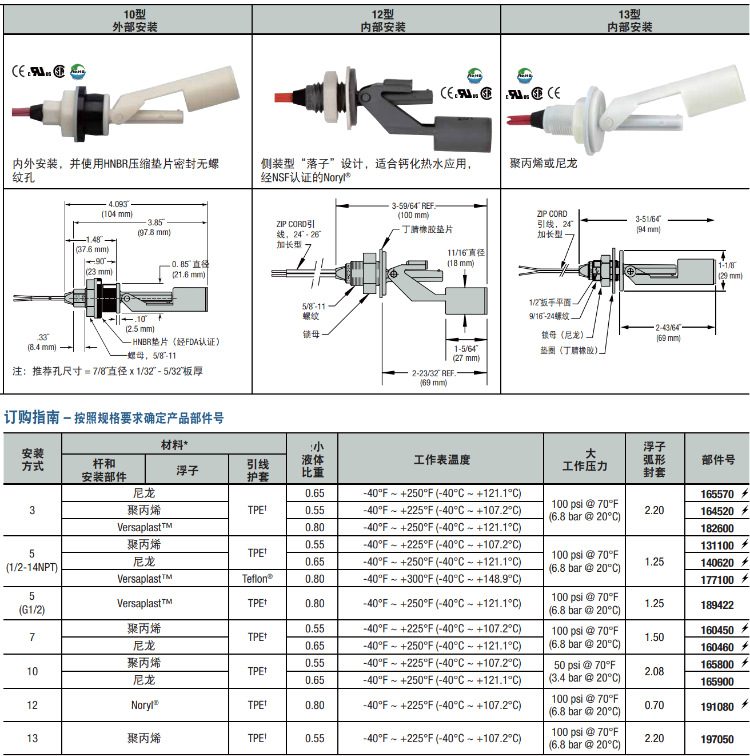 Gems捷迈LS-7系列10型LS-7-165800,165900,182700浮球液位开关