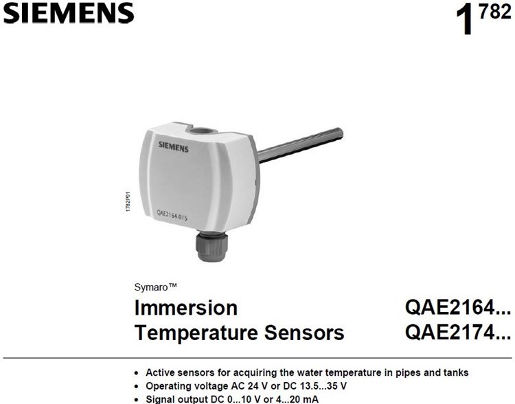 SIEMENS西门子浸入式温度传感器变送器QAE2174.010,QAE2174.015